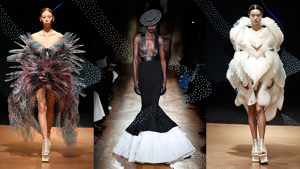 Haute couture is awash with creating excitement even at the backside of an outfit. Long trails, extravagant headgear, oversized back bows – it’s all about the drama.